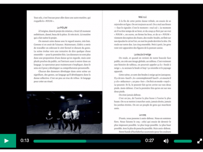 Il s'agit d'un projet d'ouvrage littéraire de danse, un voyage photographique au cœur de lieux culturels. Chaque chapitre du livre présente un style propre d'écriture, associé à des photos de contextes, parfois quelques dessins réalisés par des contributeurs. En insert, sous forme de petite pages émergent des définitions théorico-rigolotes issues du Dico du spectateur : spectateur-de-la-non-danse, spectateur-néo-spectateur, spectateur-à-temps-partiel...