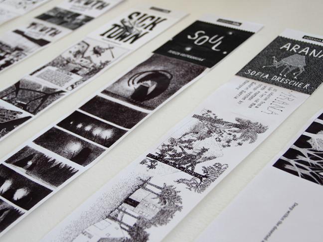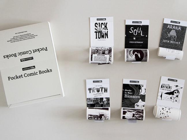 À ce jour, 6 artistes/auteurs principalement européens (Portugal, Angleterre, République Tchèque, Allemagne, Afrique du Sud) ont joué le jeu de ce support original qui demande une vraie adaptation de leurs univers. Un objet mi-pragmatique mi-expérimental dont la narration n’est pas sans rappeler celle de la pellicule de cinéma ou des flipbooks.