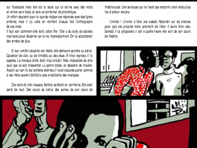 Codes du théâtre encore dans la suite du récit qui se déroule en alternant des scénettes, très parlées. On aime ces dialogues qui nous restituent la langue de nos ados. Et leurs préoccupations. Qu’y voit-on ? Rien de nouveau, sur la scène de théâtre du monde se jouent éternellement les mêmes intrigues: je t’aime, je ne t’aime plus, et comment le dire. Je t’embrasse, je ne t’ai pas embrassé, je ne t’embrasserai pas, tu en as embrassé un autre. . .