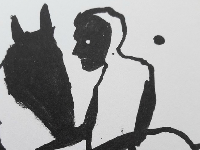 Où vont les chevaux quand ils vont à la guerre se demande-t-elle d’abord ? On suit la progression du cheval, digne et élégant, vers les champs de bataille, à travers des paysages désertés, dévastés, sans vie. La phrase est courte, les scènes sont brèves, les répétitions scandent l’avancée du cheval et marquent celle de l’écriture. Plus loin, le hennissement qui autrefois disait la joie ou le plaisir se fait expression de la terreur, de la souffrance et de l’horreur. Si jusqu’au bout le cheval est forteresse, réconfort, confiance, il est aussi soumission, sacrifice, effroi. Enfin par-dessus tout, une fois le recueil refermé, il restera pour le lecteur celui qui conduit la poétesse, “fidèles aux phrases et aux mains”. Des dessins au feutre noir ou à l’aquarelle d’Alexandra Deprez accompagnent la prose poétique puissante et brève. Des illustrations fortes et sombres qui vont à l’essentiel et sont en symbiose avec les mots d’Albane Gellé.