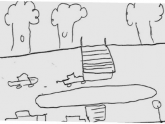 La stratégie d’écriture qu’il a développé au fil du temps est celle de l’écriture de terrain, l’écriture du dehors : « Sortir l’écriture de son enclave culturelle et sortir pour écrire, ce sont deux éléments importants. Le fait d’être dehors, de se déplacer, d’avoir des consignes d’observation, c’est précis et c’est démocratique, ça plaît beaucoup aux enfants qui n’ont pas l’habitude d’écrire. Dans un premier temps il y a juste à observer. L’écriture plus narrative vient après. Les situations d’écriture en classe sont assez factices parce qu’il faut écrire à partir de rien. » Dessins, écriture de terrain et développement textuel sont autant d’étapes qui guident chaque projet.