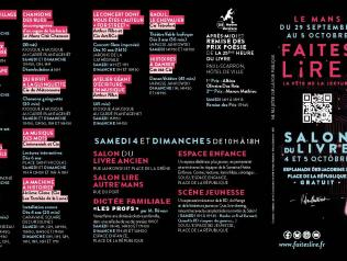 Faites lire! 04/10/2025 - 05/10/2025 Le Mans SALON DU LIVRE Faites lire! Littérature Générale, littérature Jeunesse, BD/Manga/Comics TABLES RONDES ET RENCONTRES… Lire la suite Type d'événement Salon