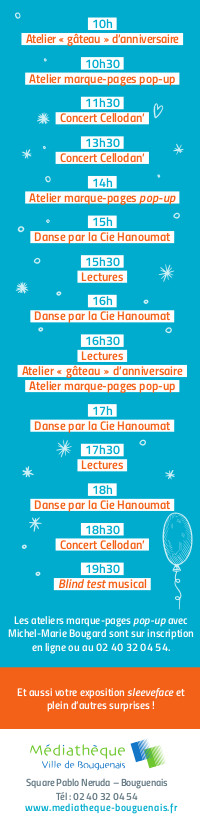 Pour célébrer cet anniversaire, la Médiathèque a préparé une journée riche en festivités avec de la danse, de la musique, des lectures, une exposition, des ateliers pour petits et grands, et encore plein d’autres surprises…