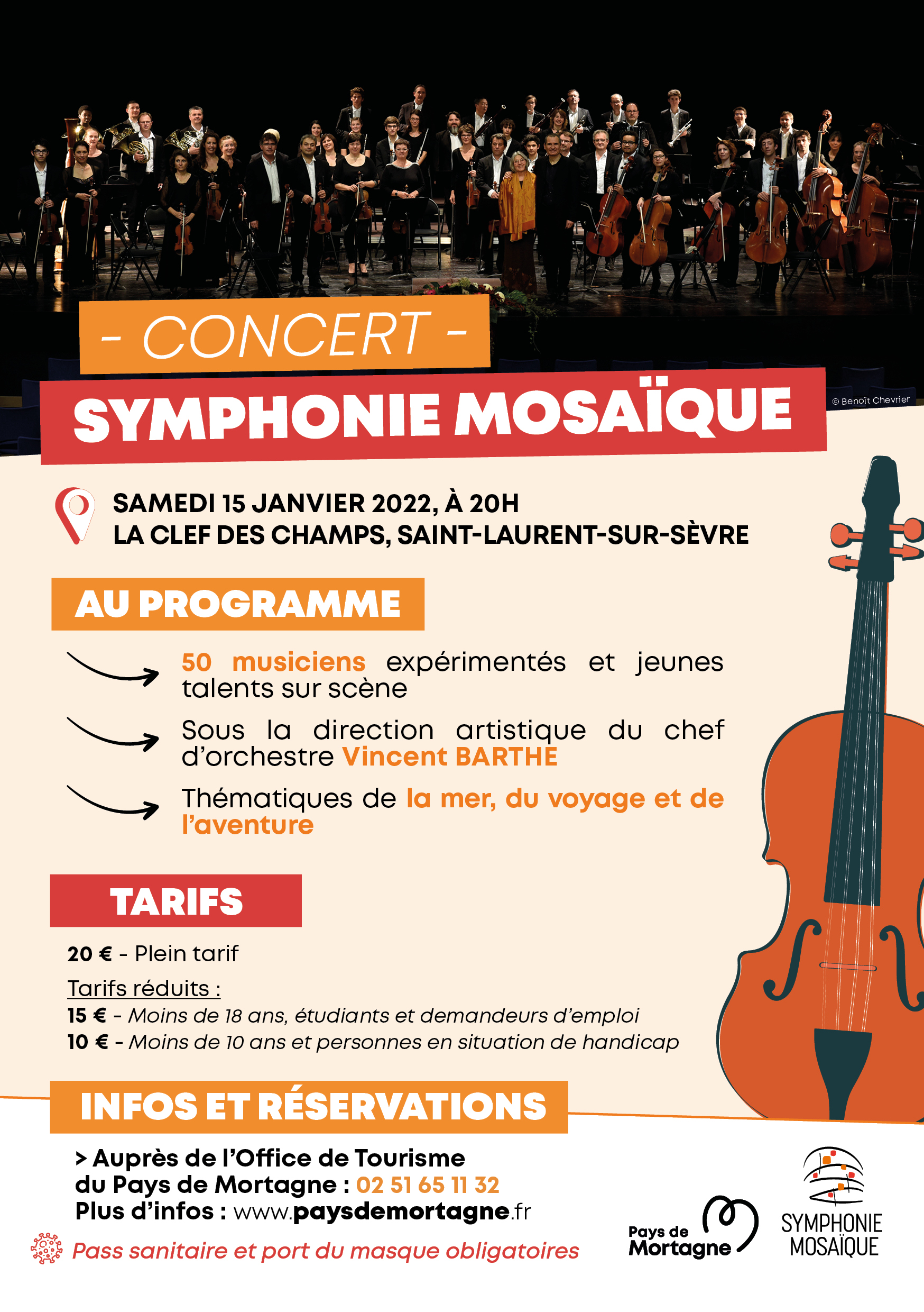 Le Pays de Mortagne accueillera le samedi 15 janvier 2022 l’orchestre « Symphonie Mosaïque » à la salle de la Clef des Champs à Saint-Laurent-sur-Sèvre.