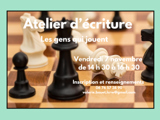 Depuis plus de 2 ans, je vous propose un moment rien qu’à vous pour écrire librement et de laisser libre cours à votre imagination pendant deux heures à partir de propositions d’écriture créatives, ludiques et accessibles. Les thématiques changent à chaque séance (voir programme) ; elles invitent chacun à jouer avec les mots, à inventer des histoires, se surprendre.