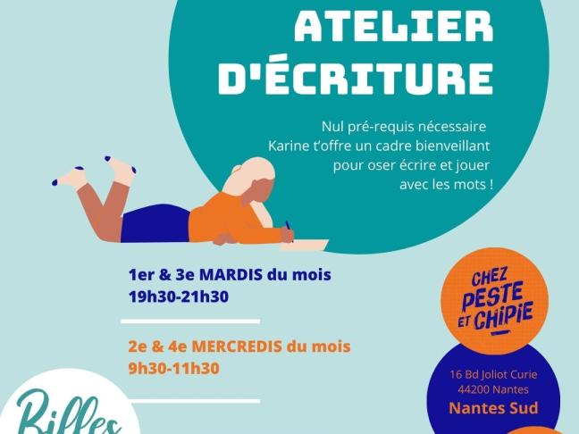 Pendant deux heures, deux fois par mois, à travers des jeux d'écriture, venez vous amuser avec les mots. Nul pré-requis nécessaire, il suffit d'avoir envie d'écrire. Un peu, beaucoup, à la folie, qu'importe ! Profitez d'un cadre régulier et rassurant pour oser, échanger, s'amuser...