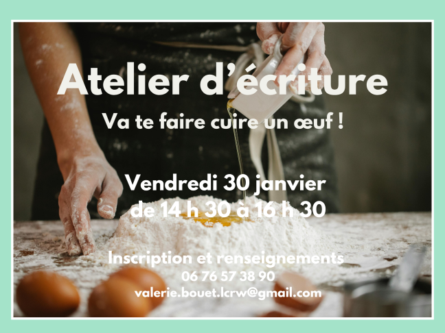 Atelier d'écriture ludique et créatif sur le thème "Va te faire cuire un œuf !" dans un cadre bienveillant et chaleureux.