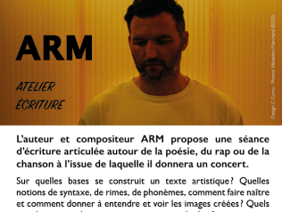 Des mots à l'image 19/09/2025 Atelier d’écriture - « Des mots à l’image » Le musicien auteur-compositeur ARM propose une séance d’écriture articulée autour… Lire la suite Type d'événement Atelier d'écriture