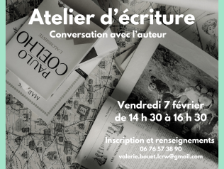Atelier d'écriture ludique et créatif - Conversation avec l'auteur 07/02/2025 Ajouter un événement Atelier d'écriture ludique et créatif - Conversation avec l'auteur Type d'événement Atelier d'écriture… Lire la suite Type d'événement Atelier d'écriture