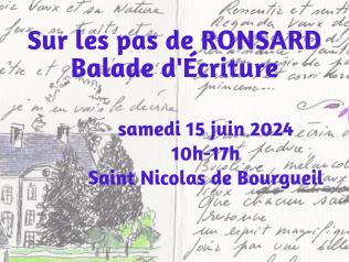 Sur les pas de Ronsard, balade d'écriture 15/06/2024 Mettre ses pas dans ceux de Ronsard. Écouter ses poèmes dans les paysages et sur les lieux qui les ont inspirés. Voyager au… Lire la suite Type d'événement Atelier d'écriture