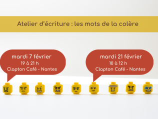 Atelier d'écriture Les mots de la colère 21/02/2023 Comment vit-on notre colère ? Comment est-elle écrite dans nos livres ? Quel mot met-on sur cette émotion ? Quel parcours… Lire la suite Type d'événement Atelier d'écriture