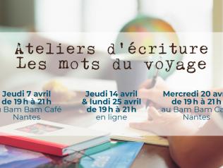 Atelier d’écriture Les mots du voyage 07/04/2022 Voyage au coin de la rue ou à l’autre bout du monde, prétextes parfaits à écrire nos expériences. Je vous invite à piocher… Lire la suite Type d'événement Atelier d'écriture