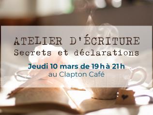 Ateliers d'écriture Secrets et déclarations à Nantes 10/03/2022 Il y a les choses que l'on dit et les choses que l'on tait. Les choses que l'on cache et les choses que l'on clame. Les mots… Lire la suite Type d'événement Atelier d'écriture