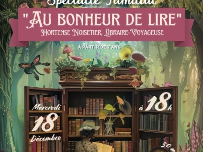 "Au Bonheur de Lire" est un spectacle de théâtre d'objet pour l'amour des livres et de la lecture ! Venez à la rencontre d'Hortense Noisetier, libraire-voyageuse, et de son récit épique et passionnant à travers les bibliothèques du monde entier.