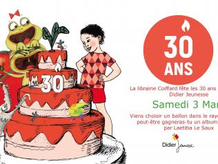 Jeu pour les enfants : la librairie Coiffard fête les 30 ans des éditions Didier Jeunesse 03/03/2018 Tu es un enfant et tu as peut-être déjà lu les contes ou histoires, ou encore écouté les livres musicaux des éditions Didier… Lire la suite Type d'événement Autre manifestation