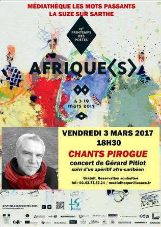 Un concert aux mélodies jazzy et métissées de Gérard Pitiot et du pianiste Bruno Lucenti pour partir à la découverte de textes poétiques d'Afrique et des Caraïbes.