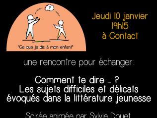 Soirée "Ce que je dis à mon enfant" Librairie Contact 10 janvier 2019 10/01/2019 Le jeudi 10 janvier 2019 à 19h15 la librairie Contact accueillera Sylvie Douet pour une nouvelle soirée "Ce que je dis à mon… Lire la suite Type d'événement Conférence, débat, forum