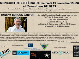 Rencontre littéraire Burgos CANTOR 15/11/2017 Dans le cadre du festival annuel Belles Latinas- Littératures d’Amérique latine organisé par la revue Espaces latinos www… Lire la suite Type d'événement Conférence, débat, forum