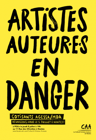 Le CAA, Collectif Artistes Auteurs de Nantes propose une réunion ouverte à tous les cotisants à la Maison des Artistes et à l'Agessa : les plasticiens, les graphistes, les photographes, les compositeurs, les écrivains, etc…