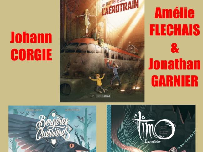 Samedi 22 Septembre, nous recevons Johann Corgié pour le très surprenant album « Les Lumières de L'Aérotrain » (scénarisé par A.Ducoudray aux éd.Bamboo). Une histoire touchante, drôle et troublante sur des adolescents au carrefour de leur existence. Il rejoindra ce même jour Amélie Fléchais et Jonathan Garnier. Ils vous présenteront le tome 2 de « Bergères Guerrières » (éd.Glénat) mais également « Timo l'aventurier » (dessin de Y.Sacré chez Le Lombard). Ces deux séries à destination du jeune public vous offrent des univers riches et merveilleux sertis de pépites d'onirisme et d'humour. Vous pourrez donc retrouver ces trois talentueux auteurs de 15h à 19h.