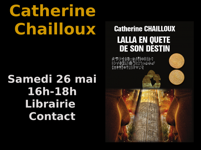 Catherine Chailloux sera en dédicace à la librairie Contact le samedi 26 mai 2018 pour son roman Lalla en quête de son destin de 16h à 18h.