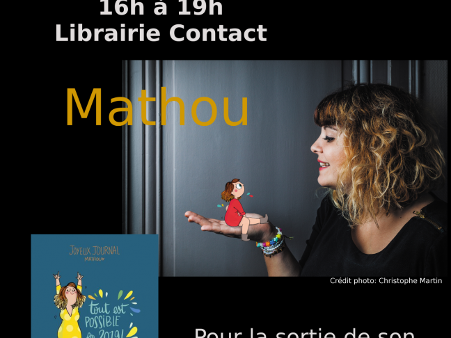 La librairie Contact accueillera Mathou en dédicace le samedi 15 septembre 2018 pour la sortie de son agenda 2019 paru aux éditions First le 23 août 2018!