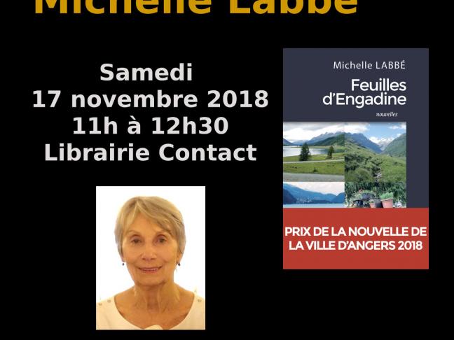 Michelle Labbé, lauréate du Prix de la Nouvelle de la Ville d'Angers 2018 sera en dédicace à la librairie Contact le samedi 17 novembre de 11h à 12h30.