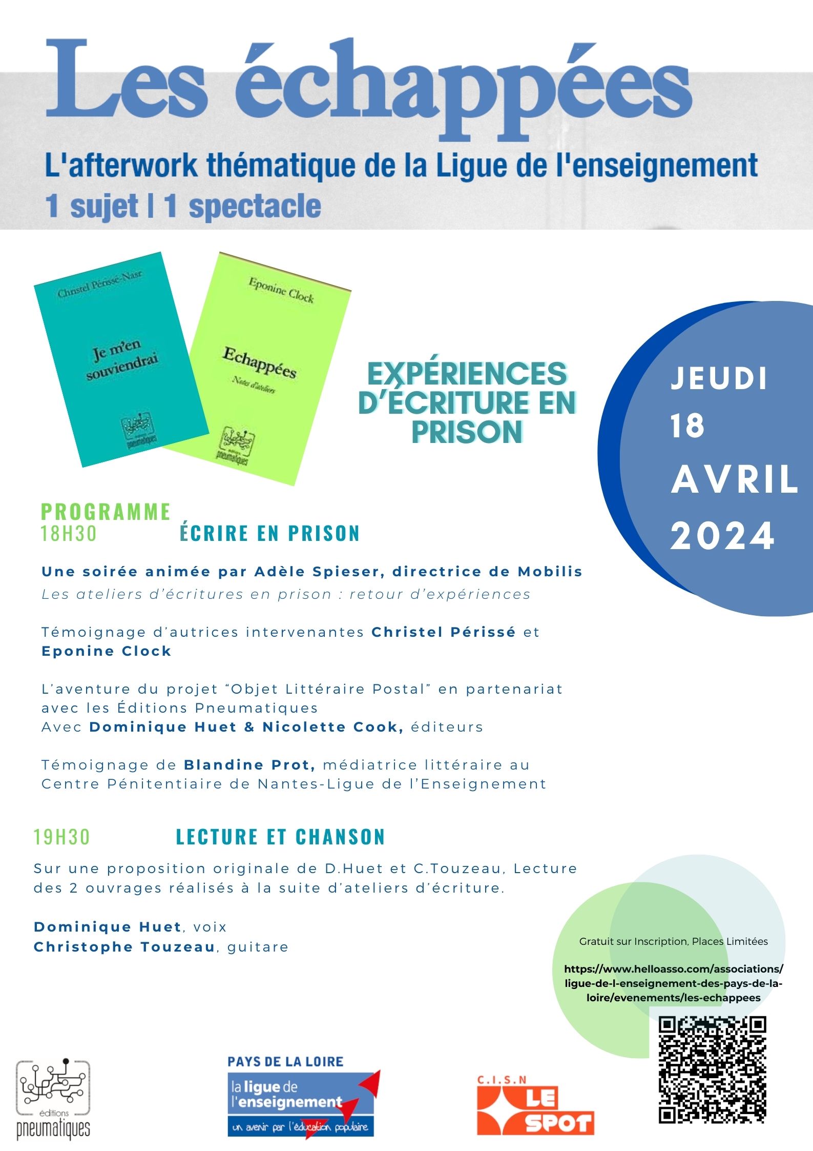 "Expériences d'écriture en prison" organisé par le service culture de la Ligue de l'enseignement des Pays de la Loire