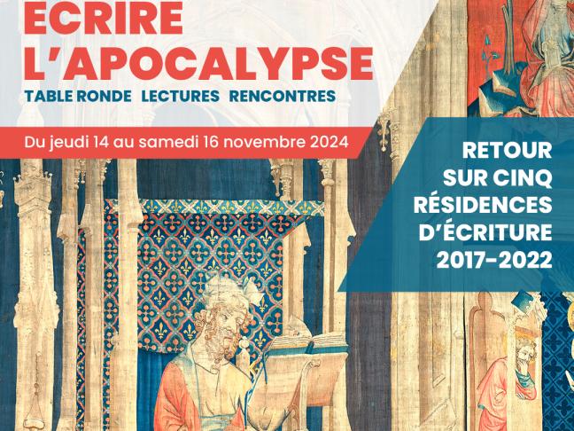Écrire l’Apocalypse ! Voilà le surprenant défi que la Ville d’Angers a lancé, depuis 2011, aux écrivains accueillis en résidence durant deux mois dans différents quartiers de la ville. Ce choix trouve toute sa légitimité dans deux œuvres magistrales appartenant au patrimoine de la cité angevine : la Tapisserie de l’Apocalypse au château d’Angers et le Chant du Monde de Jean Lurçat exposé dans l’ancien hôpital Saint-Jean, réplique contemporaine à la tapisserie médiévale.