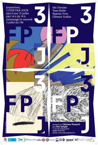 Les éditions 3 fois par jour (livre-objets, souvent sérigraphiés, illustration, BD) s'exposent au Lieu Unique du 6 au 15 juillet 2017. Créées par Idir Davaine et Clément Vuillier, les éditions 3 fois par jour défendent le travail de jeunes artistes en mesure d’assurer des aller-retours entre image imprimée et art contemporain.