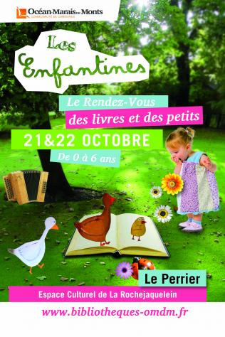 Après 6 éditions qui ont remporté un vif succès, Les Enfantines deviennent un rendez-vous incontournable pour les jeunes lecteurs du Nord Ouest Vendée. cet événement favorise l’éveil culturel du jeune enfant, et permet une rencontre entre le livre, l’enfant et l’adulte. Il souhaite aussi faire (re)découvrir au grand public le plaisir de lire mais aussi d’écouter des histoires. Le thème de l'édition 2017 est : Le tout-petit et son corps…Voir, entendre, toucher, les sens des tout-petits seront en éveil pour découvrir le monde, rêver, imaginer.