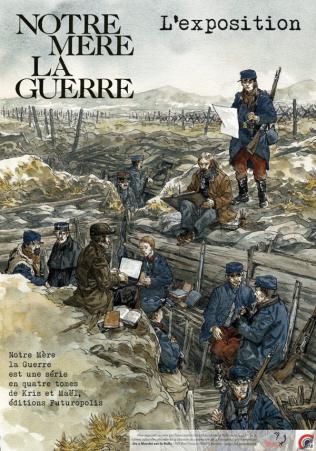 EXxposition consacrée à la série en 4 tomes Notre mère la guerre de KRIS et MAËL aux éd. Futuropolis.