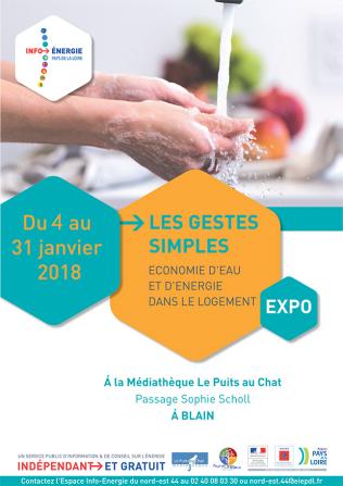 Exposition. "Adoptez les gestes simples" pour faire des économies et moins polluer chez vous : les écogestes à adopter au quotidien sur les consommations d'eau, la cuisine, les appareils de froid, l'éclairage, le lavage, les veilles, l'électroménager...