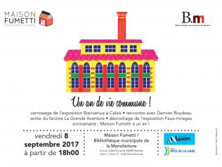 Maison Fumetti et la Bibliothèque municipale de la Manufacture fêtent un an de vie commune 08/09/2017 Maison Fumetti et la Bibliothèque municipale de la Manufacture vous convient à leur apéritif de rentrée, avec au programme… Lire la suite Type d'événement Exposition Rencontre Autre manifestation