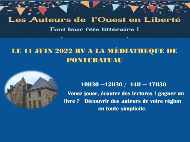 RV à la médiathèque de Pontchateau (44) le 11 juin 2022 de 10h30 à 17h30 (pause déjeuner entre 12h30 et 14h)