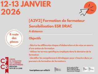 Formation de formateur - Sensibilisation ESR DRAC - A distance 12/01/2026 - 13/01/2026 Le CFCB Bretagne Pays de la Loire inaugure son parcours Formation de formateur par le stage [A2V2] Formation de formateur -… Lire la suite Type d'événement Formation