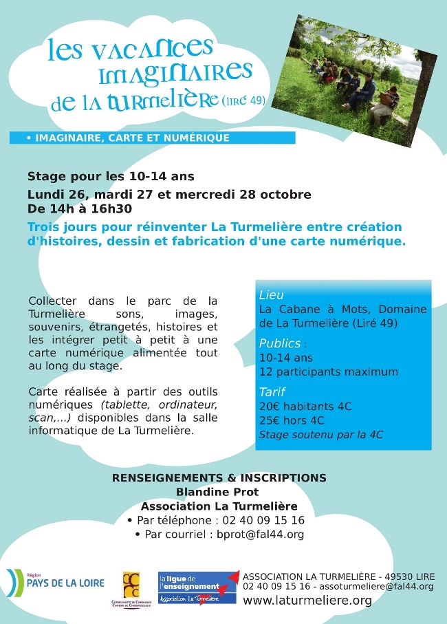 Trois jours pour réinventer La Turmelière, entre création d'histoires, dessins, et fabrication d'une carte numérique. Collecter dans le parc sons, images, souvenirs, étrangetés, histoires et les intégrer petit à petit à une carte numérique collective alimentée tout au long du stage.