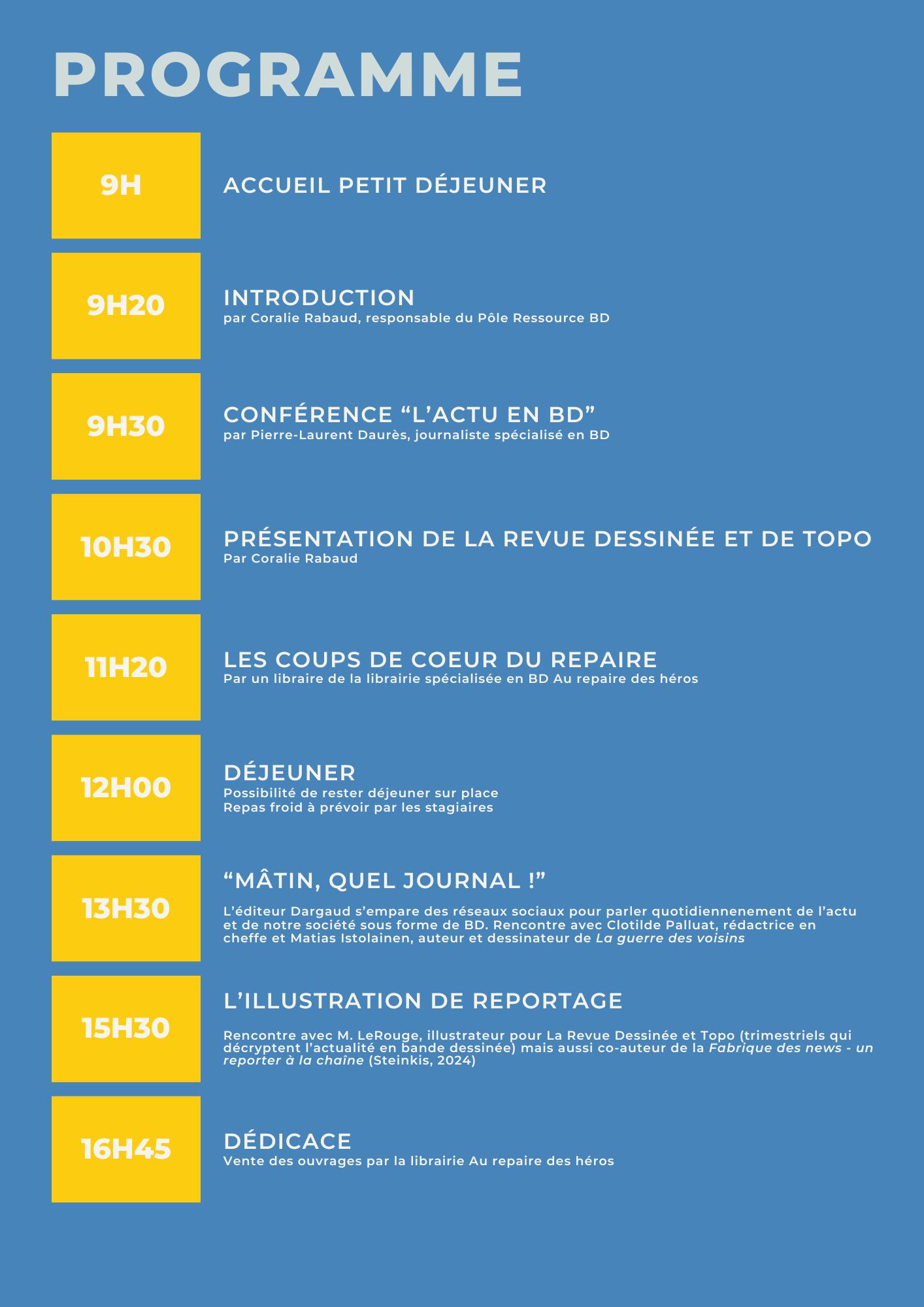 La médiathèque de Mazé-Milon (49), Pôle ressource de bande dessinée, propose chaque année une journée professionnelle autour d'une thématique.