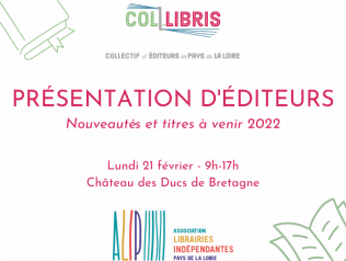 Journée de présentation 2022 des éditeurs du Coll.LIBRIS 21/02/2022 En association avec l' ALIP - l'Association des librairies indépendantes en Pays de la Loire -, le Coll.LIBRIS - Collectif d… Lire la suite Type d'événement Journée professionnelle