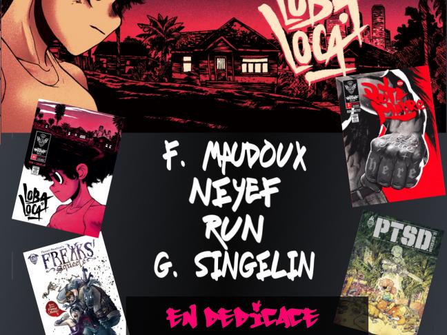 Enfin nous vous avions promis trois chiffres pour le Lundi 28 Octobre. Hé bien, je valide ces trois chiffres et ajoute quatre auteurs : 619 ! Florent Maudoux ! Neyef ! Run ! Guillaume Singelin ! A l'occasion de la sortie de la nouvelle série de l'univers Mutafukaz, « Loba Loca » par Guillaume Singelin et Run, l'auteur de « Freak's Squeele » et celui de « Puta Madre » participent aussi à ce lancement tonitruant !
