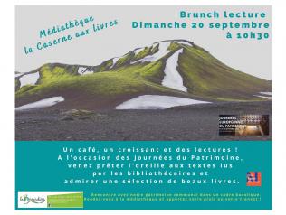 Brunch lecture 20/09/2020 A l'occasion des Journées du Patrimoine, venez prêter l'oreille aux textes lus par les bibliothécaires, déguster quelques… Lire la suite Type d'événement Lecture publique