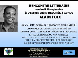 Rencontre littéraire avec Alain Foix 29/09/2017 Alain Foix est un écrivain, philosophe, dramaturge, metteur en scène et scénariste français né à Pointe-à-Pitre ( Guadeloupe)… Lire la suite Type d'événement Lecture publique