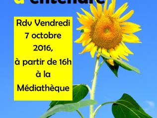 Histoires à entendre 07/10/2016 Venez écouter nos histoires, tout en vous promenant à la Médiathèque et dans l'Ilot des Arts. Un moment détente à partager ! Lire la suite Type d'événement Lecture-spectacle