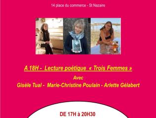 Soirée littéraire festive 15/12/2022 Trois autrices - Gisèle Tual, Marie-Christine Poulain, Arlette Gélabert, ont conçu une lecture théâtralisée poético-musicale… Lire la suite Type d'événement Lecture-spectacle