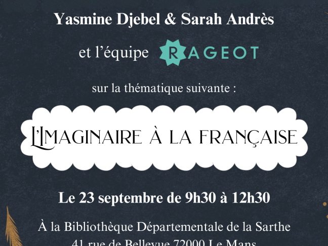 Les éditions Rageot ont le plaisir d'organiser une matinée professionnelle autour de la thématique l’imaginaire à la française, pour les libraires, bibliothécaires et professionnel.les du livre, au Mans, le lundi 23 septembre 2024 de 9H30 à 12h30.