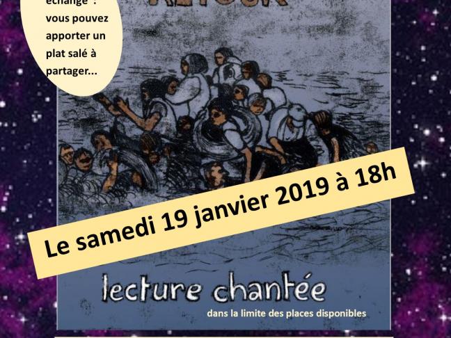 Pour la NUIT DE LA LECTURE, nous vous invitons à une lecture chantée "ALLER SANS RETOUR", sur le thème de l'exil, par Écarquille Théâtre.
