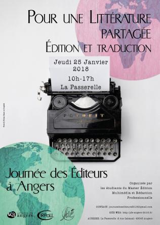 Organisée par le Master 2 Edition, édition multimédia, rédaction professionnelle de l'Université d'Angers, cette journée des éditeurs vise à faire dialoguer professionnels de l’édition et de la traduction, étudiants et enseignants, dans le cadre de conférences et de tables rondes.