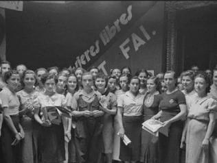 « En 1936, des groupes de femmes à Madrid et à Barcelone fondèrent les Mujeres Libres, organisation destinée à libérer les femmes du « triple asservissement à l’ignorance, en tant que femmes, et en tant que productrices ». Bien que cela ait duré moins de trois ans (leurs activités en Espagne connurent une fin abrupte lors de la victoire des forces franquistes en février 1939), les Mujeres Libres mobilisèrent plus de 20 000 femmes et développèrent un vaste réseau d’activités visant à accroître l’autonomie des femmes tout en construisant un sens de la communauté. »