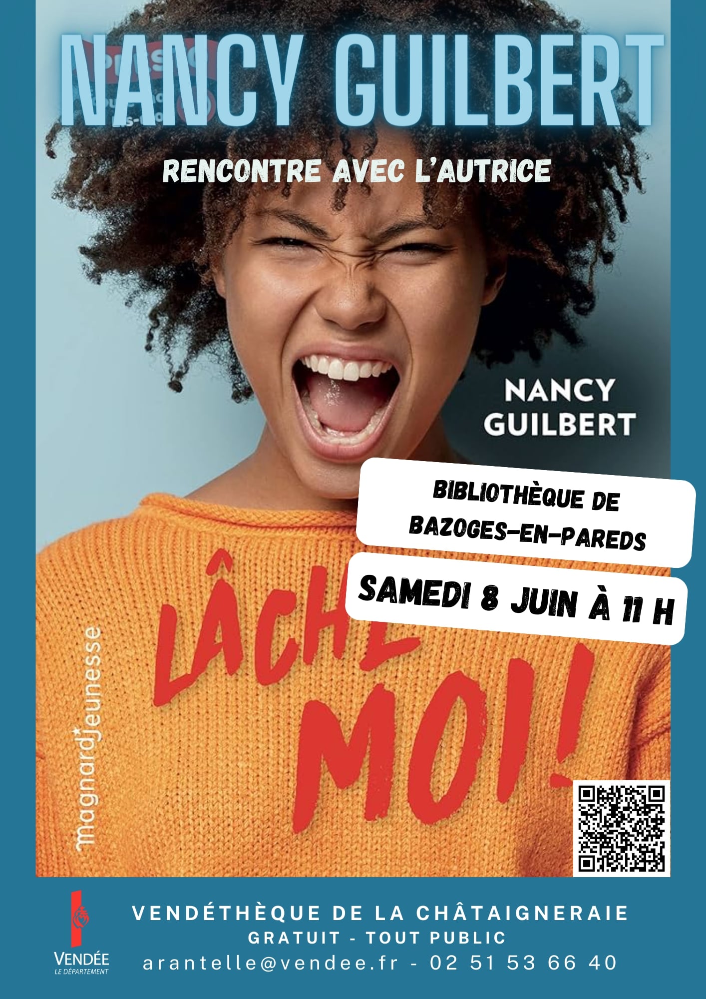 Venez rencontrer l’autrice jeunesse Nancy Guilbert le samedi 08 juin à 11h à la Bibliothèque de Bazoges-en-Pareds. Au cours d’une matinée d’échanges, Nancy Guilbert présentera son parcours d’autrice, ses ouvrages et elle répondra à vos questions.