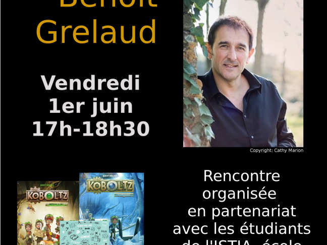 En partenariat avec les étudiants de l'Istia, école d'ingénieurs d'Angers, la librairie Contact accueillera le vendredi 1er juin l'auteur de romans jeunesse Benoît Grelaud. Cette rencontre se déroulera au rez-de-chaussée de la librairie de 17h à 18h30, venez nombreux !